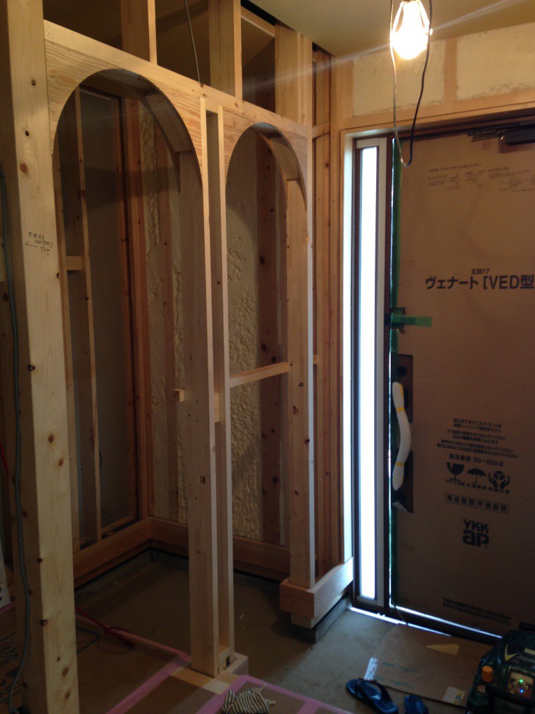 アーチのついた、素敵なアール壁になる予定です。こちらも仕上がりが楽しみです。