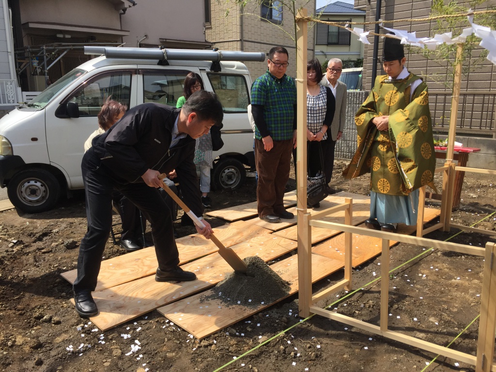 風が強い日でしたが、地鎮祭の最中は風も止んで 土地にも工事を快く迎えられているようです。