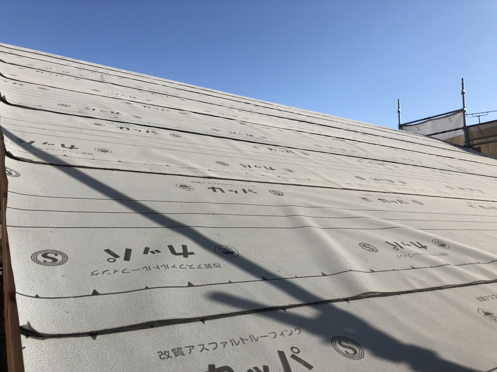 屋根の下地も順調に完了し、防水紙(ルーフィング)施工も完了しました。